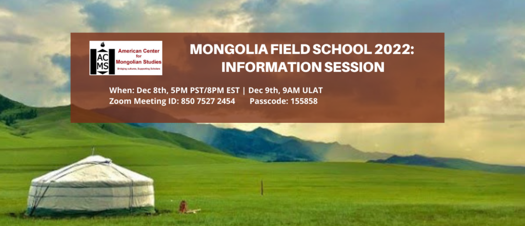 Please join us for a live, online Information Session where we will introduce the Mongolia Field School courses for summer 2022. The session will be recorded and made available through the ACMS website for those unable to attend the live session.
